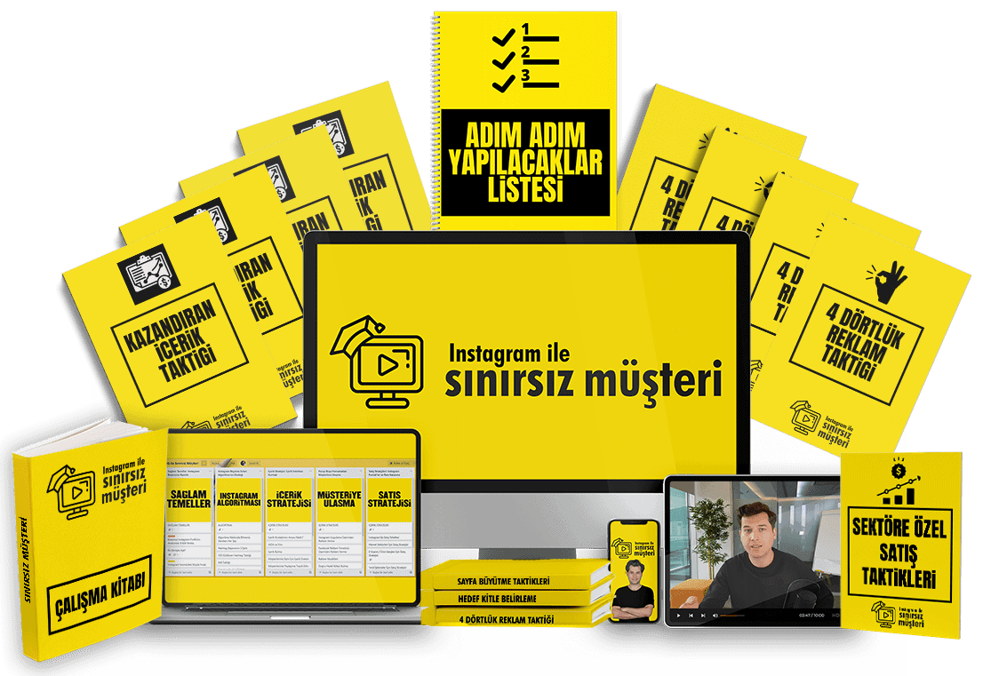 Adım adım video derslerden, işinizi kolaylaştıracak şablonlardan, ne yapmanız gerektiğini açıkça belirten görev listelerinden, her şeyin eksiksiz yapıp yapmadığınızı takip edebileceğiniz kontrol listelerinden oluşan Instagram ile Sınırsız Müşteri Sistemi ile takipçi sayınız kaç olursa olsun düzenli yeni müşteri akışı sağlayacaksınız.